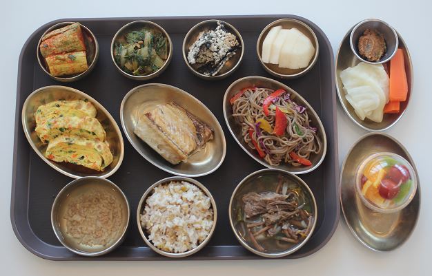 잡곡밥/고비육개장/노르웨이고등어구이/야채계란말이/들기름막국수/ 김부각/숙쌈*야채스틱/얼갈이나물/오이소박이김치/배 간식-모듬과일