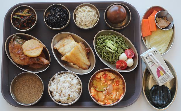 잡곡밥/해물순두부찌개/닭다리오븐구이/적어구이/ 들기름막국수/숙쌈*야채스틱/건파래무침/무들깨나물/열무김치/흑토마토 간식-국산콩두유/쑥떡
