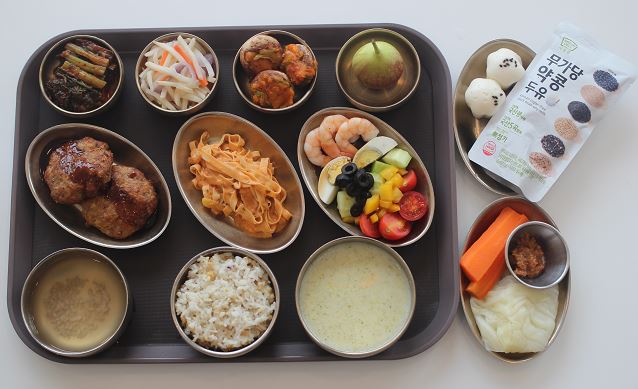 잡곡밥/황태비지찌개/소갈비찜/가자미구이/야채계란말이 /마늘쫑락교무침/모듬콩조림/야채스틱*숙쌈/겉절이김치/햇배/ 간식-군고구마/한라봉쥬스