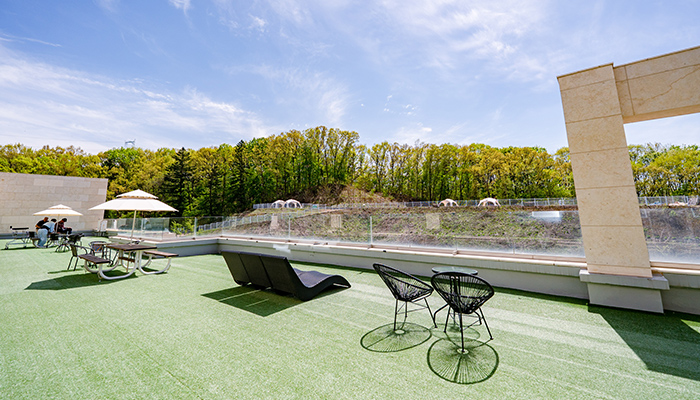 단독 건물과 야외 공간으로 이루어져 있습니다.